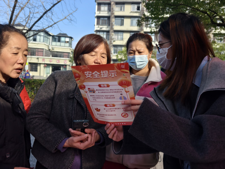 与此同时,为确保宣传全覆盖、无死角,闲林街道积极发动基层网格力量,将安全提示送达千家万户。辖区内各村、社区同步行动,在主要路口、宣传栏等醒目位置悬挂安全警示横幅,营造浓厚的宣传氛围。村社工作人员、网格员、志愿者等主动上门走访,尤其是针对沿街店铺、独居老人等重点场所和人群,进行“点对点”宣传,发放宣传资料,并结合近期典型案例进行警示教育。此外,部分村社还充分利用电子显示屏、社区广播、居民微信群等渠道,滚动播放烟花爆竹安全公益短视频、音频提示,以更直观、更易接受的方式提醒居民时刻绷紧安全弦。本轮网格化宣传活动累计普及群众8000余人次,取得了显著成效。